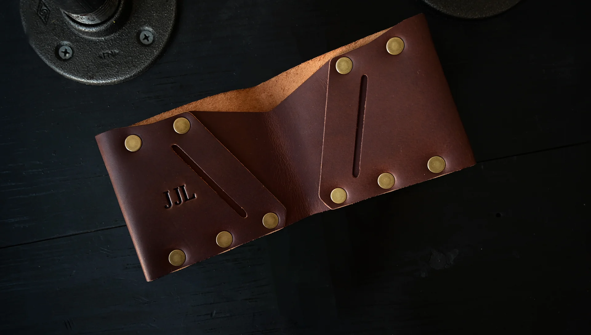 Our wallets use old school solid brass riveted construction to ensure they will not fall apart at the seams.
